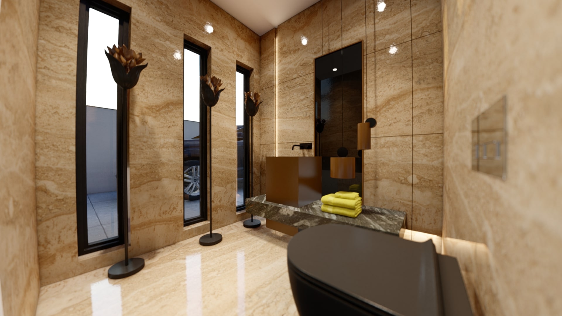 تحتوي على طابقين يشمل الارضي غرفة استقبال الضيوف مع اطلالتين الأولى على المسبح ومن الجهة المقابلة عللى حديقة المنزل مع ملحق صحي خاص بها. صالة جلوس تطل على حديقة داخلية تحوي شلال جداري وتطل من جهة ثانية على المسبح ومطبخ حار ومطبخ بارد ايضاً بإطلالة مميزة مع امكانية اضافة المسبح حسب طلب الساكن. الطابق الاول يحتوي على سويت نوم متكامل مع ملحق صحي و اطلالة على المسبح و غرفة نوم خاصة للأطفال مع اطلالة على الحديقة الداخلية ومجموعة صحية ثانية في نفس الطابق وإمكانية اضافة جلسات حسب طلب الساكن. مع اضافة طبقات من البورسلين الاسباني الخاص بالواجهات وحسب التصاميم المعدة والمبينة بالصور.